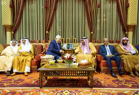 استقبل خادم الحرمين الشريفين الملك سلمان بن عبدالعزيز آل سعود، اليوم، رئيس دولة فلسطين محمود عباس.