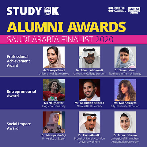أعلنت السفارة البريطانية في الرياض والمجلس الثقافي البريطاني في السعودية، القائمة النهائية التي تضم ٩ مرشحين نهائيين لجوائز خريجي الدراسة في المملكة المتحدة للعام ٢٠١٩- ٢٠٢٠؛ حيث تم اختيار المرشحين النهائيين من بين ما يقرب من ١٠٠٠ متقدم من كافة أنحاء العالم؛ لإنجازاتهم المتميزة كمحترفين في مجال الأعمال التجارية ورواد أعمال وقادة مجتمع، وأيضًا لمساهمتهم الهامة في تعزيز روابط التعاون بين المملكة المتحدة والمملكة العربية السعودية، على أن يتم الإعلان عن الفائزين بالجوائز الثلاث، في حفل يستضيفه السفير البريطاني في ١٠ مارس ٢٠٢٠.