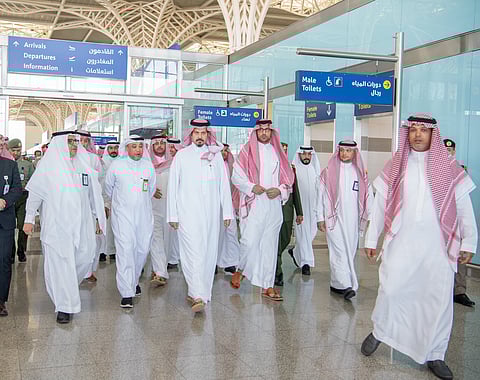 ورافق أمير المدينة المنورة خلال الجولة التفقدية، وكيل الإمارة لشؤون الحج والزيارة الدكتور عيد بن سالم التوم، ومدير جوازات المنطقة العميد عبدالرحمن بن هديان البلوي، وقائد وحدة شرطة أمن وحماية المطار العميد فهد بن عويضة المطيري، والرئيس التنفيذي للتجمع الصحي بالمنطقة عبدالرحمن الحربي، ومدير عام خدمات الزوار بوكالة وزارة الحج لشؤون الزيارة بالمنطقة راكان بن حسن السباعي، ومدير سلطة المطار عادل بن عبدالقادر عالوه، والرئيس التنفيذي لشركة طيبة لتشغيل المطارات سفيان عبدالسلام، وعدد من مسؤولي الجهات ذات العلاقة.