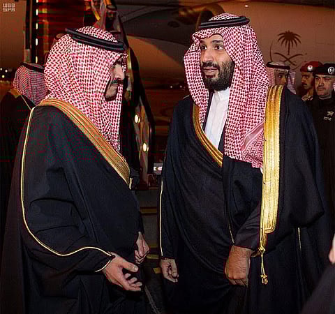 وقد غادر بمعية ولي العهد الأمير تركي بن محمد بن فهد بن عبدالعزيز المستشار بالديوان الملكي، والأمير سلطان بن فهد بن سلمان بن عبدالعزيز، والأمير عبدالعزيز بن سعود بن نايف بن عبدالعزيز وزير الداخلية، والأمير بدر بن عبدالله بن محمد بن فرحان وزير الثقافة، والأمير عبدالله بن بندر بن عبدالعزيز نائب أمير منطقة مكة المكرمة.