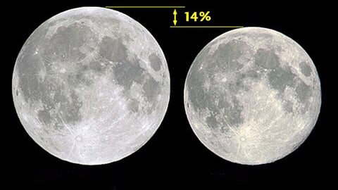 ونوه أبوزاهرة بأن القمر سيصل لحظة الاكتمال عند الساعة 09:37 مساءً بتوقيت مكة (06:37 مساءً بتوقيت غرينتش)، ويكون قطع نصف مداره حول الأرض خلال الشهر، وذلك بعد تسع ساعات و38 دقيقة من وصوله إلى نقطة الحضيض، وهذا التزامن سيجعل حجمه الظاهري أكبر بنسبة 14%، وأكثر سطوعاً بنسبة 30% مقارنة بأصغر قمر بدر عندما يكون في (ألاوج) بعد نقطة له من الأرض.