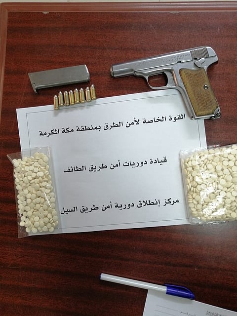 أطاحت قوة أمن طريق السيل شمالي الطائف، بمواطن في الثلاثينيات من عمره، كان يخفي كمية من الحبوب المُخدرة في جيبه، بالإضافة إلى حمله سلاحًا ناريًّا؛ حيث تم تسليمه لإدارة مكافحة المخدرات بالمحافظة لاتخاذ الإجراءات النظامية بحقه.