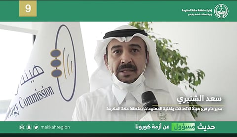 أكد سعد الشنبري، المدير العام لفرع هيئة الاتصالات وتقنية المعلومات بمنطقة مكة المكرمة، من خلال مبادرة "حديث مسؤول" عبر حساب إمارة منطقة مكة المكرمة بموقع التواصل الاجتماعي "تويتر"، جاهزية الفرع منذ بداية أزمة "كورونا" حتى الآن، وأن الجهود أسهمت في رفع مستوى جاهزية شبكات الاتصالات عبر عدد من الإجراءات لاستيعاب الطلب المتزايد على خدمات الإنترنت في السعودية.