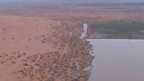 المصور محمد عثمان الطويل وثق بعدسة كاميرته الطائرة جمال الروضة وقد أضحت بحيرة طبيعية على ضفاف الكثبان الرملية.
