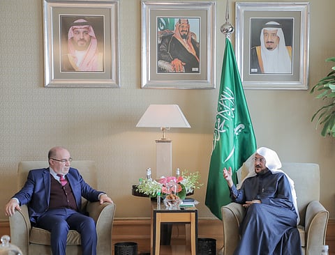 التقى وزير الشؤون الإسلامية والدعوة والإرشاد الشيخ الدكتور عبداللطيف بن عبدالعزيز آل الشيخ، اليوم بمقر إقامته بالعاصمة المصرية القاهرة، وزير الشؤون الدينية والأوقاف بجمهورية الجزائر السيد يوسف بلمهدي، وذلك على هامش زيارته الرسمية لجمهورية مصر العربية للمشاركة في أعمال المؤتمر الـ32 للمجلس الأعلى للشؤون الإسلامية.
