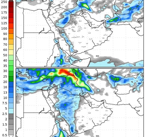 تَوقع الباحث في الطقس عضو لجنة تسميات المناخية عبدالعزيز الحصيني، توسع #الحالة_الممطرة_الربع_عشر زمانيًّا ومكانيًّا، لتشمل معظم المناطق ودول الخليج واليمن بأمطار متفاوتة من مكان إلى آخر، من خفيفة لمتوسطة وأحيانًا غزيرة، مع فرصة سيول وحبات برد.