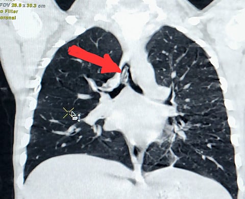 ووفقًا لما ذكرته صحة الطائف لـ"سبق"؛ فقد كان الطفل الذي يبلغ من العمر 3 سنوات، قد حضر مع ذويه إلى طوارئ المجمع، يعاني من اختناق شديد مصحوبًا بصوت تصفير مع كل تنفس للطفل، وبعد الكشف عليه اتضح وجود جسم غريب، سقط في مجرى الهواء.
