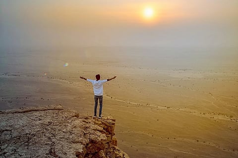 وربما يراودك الفضول حول ماهية المنظر الذي ستطل عليه من حافة العالم، ويُعد "الدمخ" الشخص المناسب للإجابة عن هذا السؤال، ولا سيّما أنه سبق أن صعد إلى حافة العالم.