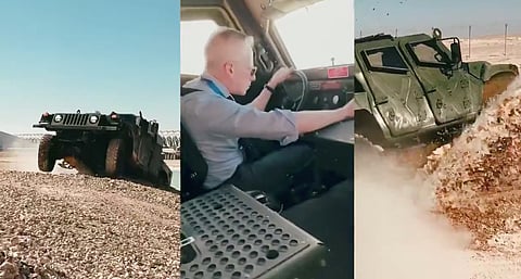 نشرت السفارة الأمريكية بالرياض، أمس، مقطع فيديو يُظهر السفير مايكل راتني؛ يستعرض بعض المنحدرات والممرات الوعرة والمائية بمركبة همفي سابر، في معرض الدفاع العالمي المُقام بالرياض.