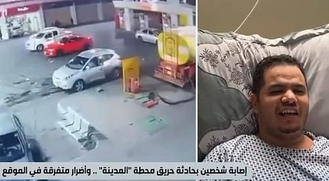 أكد نبيل عبدالله، صاحب المركبة المشتعلة المتضرر من حريق محطة وقود بالمدينة، أنه "لم يمسك سيجارة بيده ولم يدخن طول عمره، متهمًا ناقلة البنزين بأنها كانت سببًا في إصابته بحريق في جسده.