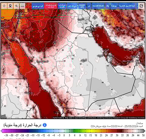وأضاف الحصيني بأن درجات الحرارة العظمى تتراوح في أغلب مدن السعودية بين 34—45°C، والصغرى بين 17—33 °C، وفي حالة تقدم كتلة معتدلة تقل الحرارة عن ذلك. مؤكدًا أنه تكثر فيه خروج العقارب والحيات، قائلاً: "حصِّنوا أنفسكم وأهليكم بالأذكار المأثورة في ذلك".