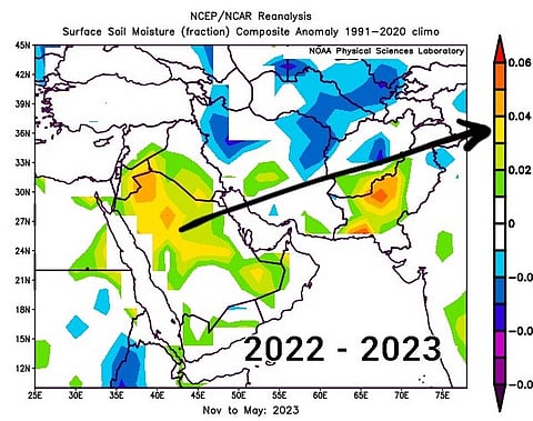 وأوضح "العصيمي"، عبر حسابه على منصة "إكس"، أن "اللانينا ترتبط إحصائيًا بمعدلات أمطار قليلة في الخريف والشتاء، وأجواء أكثر برودة في المناطق الوسطى والجنوبية خاصة مع فوارق حرارية كبيرة بين النهار والليل؛ بسبب تأثير المرتفع الجوي العلوي".
