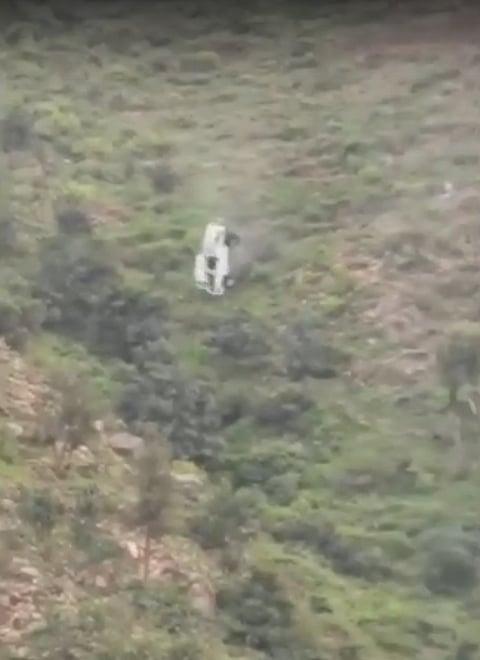 شاهد .. مركبة تتدحرج من القمة وترمي مَن فيها قبل سقوطها من جبال منجد بـ"هروب"