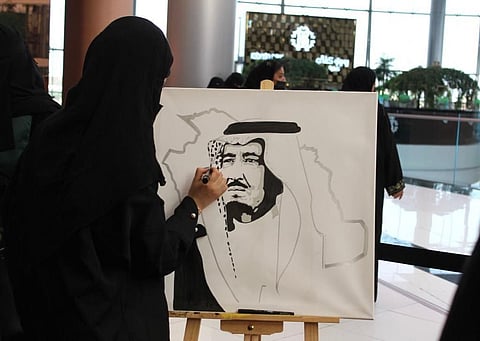 وشارك زوار المعرض في اللوحة التعبيرية عن حب الوطن، وتعرفوا على العملات السعودية التي مرت على تاريخ المملكة العربية السعودية، مع إتاحة الفرصة لهم لمشاهدة رسم حي لصورة الملك سلمان بن عبدالعزيز -حفظه الله- والتصوير مع مجسمات الزي السعودي، بالإضافة إلى إقامة العديد من الأنشطة الترفيهية الوطنية والعروض المرئية والهدايا المصاحبة للزوار والأطفال.