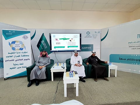 نفذت إدارة التعليم في محافظة ظهران الجنوب عددًا من الفعاليّات والبرامج بمناسبة اليوم الدولي للتسامح، وذلك في مقر الإدارة والمدارس بجميع مراحلها الدراسية وتستهدف هذه الفعاليّات والبرامج نحو 14 ألف طالب وطالبة، بالإضافة إلى منسوبي الميدان التعليمي، وبلغ عدد المدارس المشاركة في الفعاليّة (49) مدرسة.