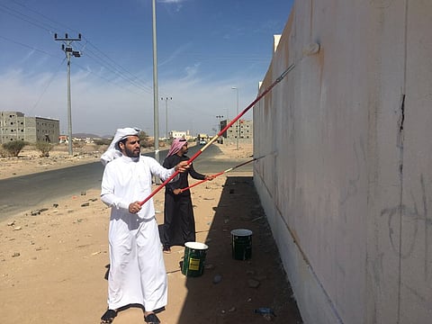 شمر عدد من طلاب مدرسة "أم الدوم" الثانوية بشمال الطائف عن سواعدهم لإزالة الكتابات التشويهية من على جدران مدرستهم، وذلك بقيادة قائد المدرسة فهد ثواب الذيابي ورائد النشاط أحمد عبدالله الذيابي والمرشد الطلابي يزيد عِوَض العازمي.