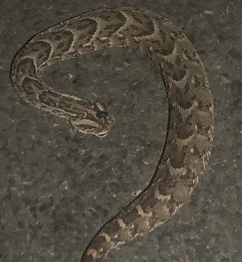 حيث ذكر عادل الحارثي أنه تفاجأ مساء اليوم أثناء مزاولة رياضة المشي بوجود أفعى كبيرة على الشارع الذي يرتاده الناس باستمرار مقتولة، وقد تلطخت طبقة الأسفلت بدمائها ما أثار فيه الفزع والاستغراب.