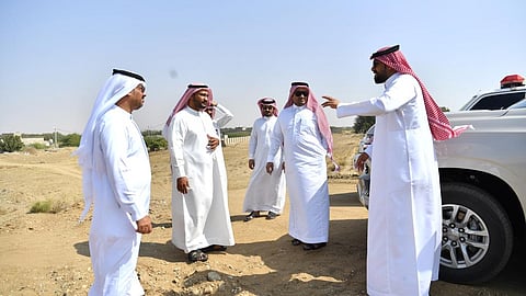 واستمع خلال جولته التي شملت قرى خبت بن جبران، والكنًّة، وخِليِّج، والشعوف، والهجنبة، وجر أبو العشر, لشرح مفصَّل من رئيس البلدية المهندس ناصر عطيف، عن المصدات الرملية ومسارات الأودية التي تصبُّ فيها السيول القادمة من وادي ريم ووادي عرمرم، ومشاريع درء مخاطر السيول.