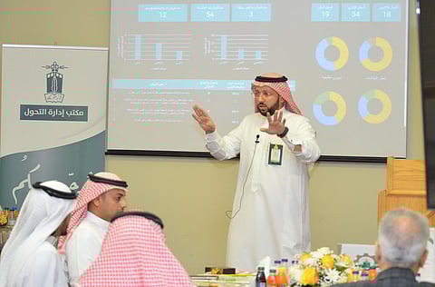 وأشاد بالجهود التي يبذلها مكتب إدارة التحول بإشراف نائب رئيس الجامعة للدراسات العليا والبحث العلمي الدكتور أمين بن يوسف نعمان وإدارة وأعضاء المكتب من خلال إعداد الخطط والمبادرات التحولية ومؤشرات الأداء للتحول إلى نظام الجامعات.
