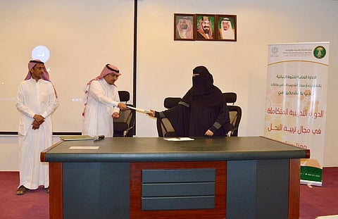 وقعت متدربات في مجال تربية النحل وإنتاج العسل، اليوم الخميس، عقود التوظيف ووزعت الشهادات على بعض المتدربات حضوريًا وعن طرق الاتصال المرئي من مركز التدريب بجازان.