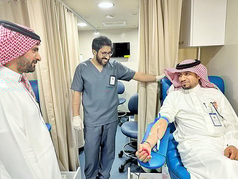 وتبرع مدير عام صحة حائل الدكتور فرحان الشمري، بدمه، في مقرّ الفعاليات في ممشى الفجر، بعد تدشينه فعاليات الاحتفال باليوم العالمي للمتبرّعين بالدم.