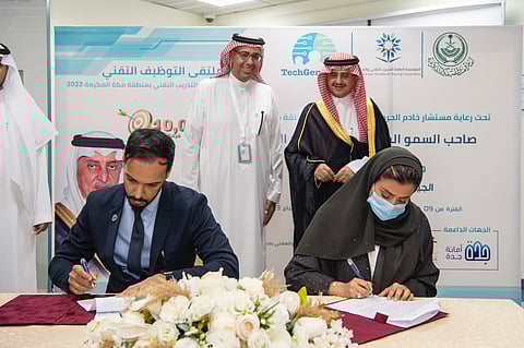 تحت رعاية مستشار خادم الحرمين الشريفين أمير منطقة مكة المكرمة الأمير خالد الفيصل، ونيابة عن نائب أمير منطقة مكة المكرمة الأمير بدر بن سلطان، زار وكيل إمارة المنطقة الدكتور مشبب القحطاني مقر ملتقى التوظيف التقني "الجيل التقني TechGen2023" الذي تنظمه الإدارة العامة للتدريب التقني والمهني بمنطقة مكة المكرمة برعاية الأمير خالد الفيصل، مستشار خادم الحرمين الشريفين، أمير منطقة مكة المكرمة، وتستضيفه الكلية التقنية بجدة، وسط حضور أكثر من 95 جهة مؤسسة وشركة قدمت أكثر من عشرة آلاف فرصة وظيفية.