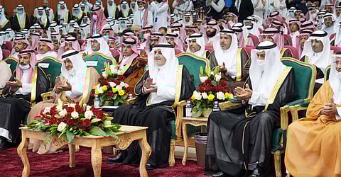 وشاهد الجميع عرضًا مرئيًّا عن إنجازات المدارس خلال العام الدراسي الحالي، وبدأت مسيرة الخريجين بعد ذلك.. ثم كرم أمير المنطقة المتفوقين بالمدارس، وكرم الطالبة اعتزاز سعد النفيعي، بمناسبة فوزها بالمركز الثاني على مستوى العالم في مسابقة لحساب الذهني العبقري الصغير.