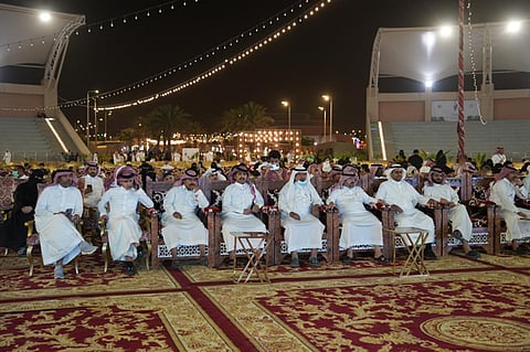 واستمتع الجمهور وعشاق فن المحاورة بالقصائد التي بدأت بتهنئة المنتخب بتأهله لنهائيات كأس العالم في قطر 2022.