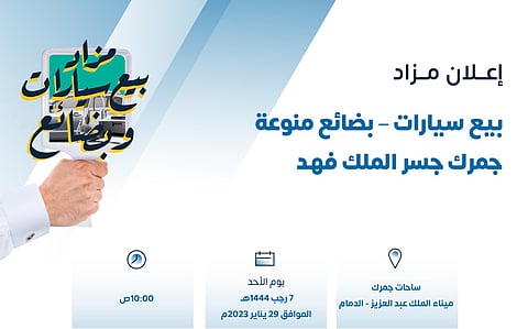 ومن المقرر إقامة المزاد في ساحة جمرك ميناء الملك عبدالعزيز بالدمام يوم 29 يناير في الساعة العاشرة صباحًا.