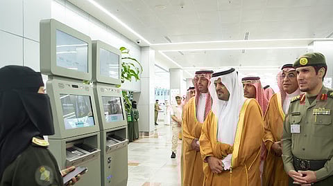 وقدمت الجوازات نبذة عن خطتها والتي تنفذها لاستقبال الحجاج بدعم المواقع المخصصة لخدمتهم بالأجهزة التقنية الحديثة وبالكوادر البشرية المؤهلة التي تسهم في إنهاء الإجراءات في وقت قياسي دون تأخير في جميع المنافذ، إذ وفرت 209 منصات خدمة، و169 جهاز كشف في صالة الحج والعمرة، كما تضم صالة (1) 114 منصة و95 جهاز كشف و64 بوابة إلكترونية، والصالة الشمالية 67 منصة و54 جهاز كشف، فيما بلغ عدد الكوادر البشرية المخصصة في صالة الحج والعمرة 1139، مقابل 730 في صالة (1) و344 في الصالة الشمالية.