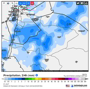 وقال عبر حسابه في "تويتر": اليوم 11 للحالة المطرية الأولى في هذا الموسم، ومتوقع بمشيئة الله أن تؤثر بسحبها وربما أمطارها على (أجزاء) متفرقة من مناطق #تبوك #الجوف #الحدود_الشمالية وربما #حائل وشمال منطقة #المدينة.