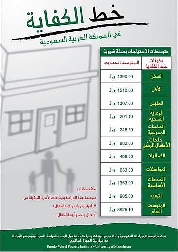 وشملت الدراسة التي أعدّتها مؤسسة الملك خالد الخيرية 10 آلاف أسرة من مختلف مناطق المملكة وأطلقت عليها "خط الكفاية".