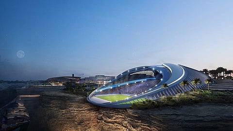 يمثل استاد الأمير محمد بن سلمان في القدية تحفة معمارية ومشروعاً سعودياً ضخماً يقف شامخاً على قمة جبل طويق مثل كل سعودي فخور بوطنه.
