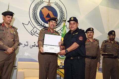 رعى مدير عام الدفاع المدني الفريق سليمان بن عبدالله العمرو حفل تخريج دورة "الاستجابة الطارئة في حالات حوادث المواد الخطرة" التي نظمتها المديرية العامة بمعهد الدفاع المدني، بناءً لرغبة المنظمة الدولية للحماية المدنية والدفاع المدني، واستمرت ثلاثة أسابيع، شارك فيها (17) متدربًا من (11) دوله من الدول الأعضاء بالمنظمة .