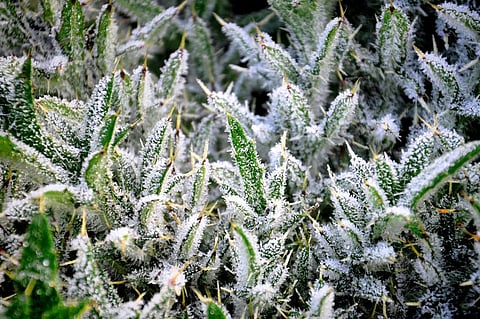 ويتوقع أن يتشكّل الصقيع في المناطق الشرقية من تبوك والغربية من حائل بفعل تدني درجات الحرارة بشكلٍ لافت مع فرصة لزخات من الأمطار على أجزاءٍ من الجوف والحدود الشمالية، وفق "طقس العرب".