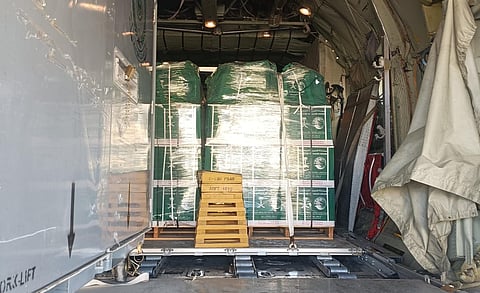 وصلت إلى مطار العريش الدولي بجمهورية مصر العربية أمس الأول، الطائرة الإغاثية السعودية الـ66 التي يسيّرها مركز الملك سلمان للإغاثة والأعمال الإنسانية بالتنسيق مع وزارة الدفاع وسفارة المملكة العربية السعودية في القاهرة، تحمل على متنها سلالًا غذائية وحقائب إيوائية، تمهيدًا لنقلها إلى المتضررين من الشعب الفلسطيني الشقيق داخل قطاع غزة.