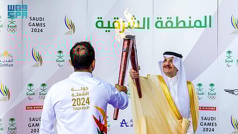 تَسلم الأمير سعود بن نايف بن عبدالعزيز أمير المنطقة الشرقية بمكتبه اليوم، شعلة دورة الألعاب السعودية الثالثة 2024، في إطار جولتها الترويجية لأكبر حدث رياضي وطني في المملكة.