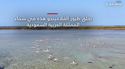 وفي المشاهد التي وثقها المصور السعودي، يمكن رؤية سيمفونية أسراب من طيور الفلامنجو وهي تحلق فوق المياه الزمردية اللون بشكلٍ يستعرض انسجامها مع الطبيعة.