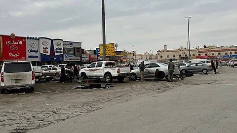 رصدت “سبق” مشهدًا متكررًا يوميًا في صناعية النسيم، حيث تتجمع عمالة سائبة أمام محال قطع الغيار وفي المواقف المقابلة، تمارس صيانة المركبات بطرق عشوائية دون تراخيص أو خبرة كافية، معتمدين على أدوات بدائية وحقائب عدة بسيطة.