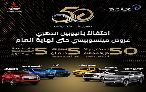 بالتزامن مع احتفالاتها بمرور 50 عاماً على شراكتها مع شركة ميتسوبيشي موتورز؛ أعلنت شركة العيسائي للسيارات وكلاء سيارات ميتسوبيشي في المملكة عن عروضها المميزة لعملائها والتي تعدّ فرصة مغرية لكل راغب في تملك سيارات ميتسوبيشي التي تمتاز بقوة الأداء وروعة التصاميم الداخلية والخارجية، فقد أعلنت شركة العيسائي عن تقديم صيانة مجانية لـ50 ألف كيلو متر أو ثلاث سنوات أيهما أسبق، على جميع سياراتها موديل العام الحالي ٢٠٢٣ ويستمر العرض إلى نهاية العام الجاري أو نفاذ الكمية، بالإضافة إلى امتداد فترة الضمان إلى خمس سنوات أو 160 ألف كيلو متر أيهما أسبق، وآخر الفقرات في عروض العيسائي المبهرة على سيارات ميتسوبيشي تقديم خدمة المساعدة على الطريق لمدة خمس سنوات.
