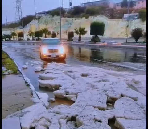 وفي النماص جادت السماء بالمطر، واكتست الأرض بالبياض، إثر البرد الكثيف الذي صاحب الحالة المطرية التي شهدتها المحافظة.