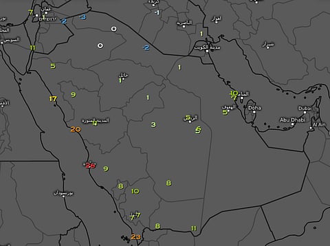وأضاف: "أقل حرارة طريف وسجّلت 3 تحت الصفر، والرياض تسجّل 5 درجات، وهي أقل حرارة تسجّلها منذ بداية الشتاء فعلياً لهذا العام".