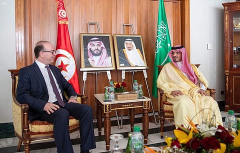 استقبل وزير الداخلية الرئيس الفخري لمجلس وزراء الداخلية العرب الأمير عبدالعزيز بن سعود بن نايف بن عبدالعزيز، في العاصمة التونسية اليوم، رئيس الحكومة بالجمهورية التونسية إلياس الفخفاخ.