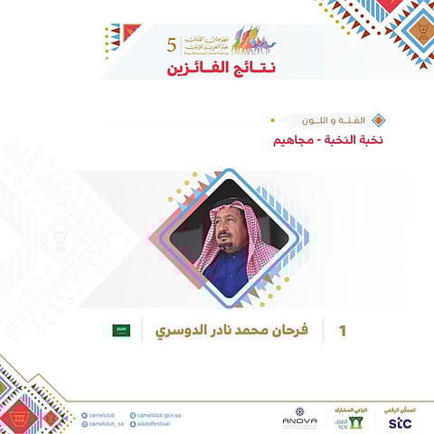 وأعلنت لجنة التحكيم النهائية قبل قليل بمهرجان الملك عبدالعزيز للإبل في نسخته الخامسة، نتائج شوط النخبة لفئة المجاهيم بفوز منقية فرحان بن محمد النادر الودعاني الدوسري بهذا الشوط.