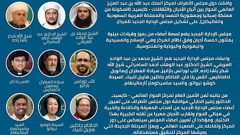 ويضم مجلس الإدارة الجديد تسعة أعضاء من رموز وقيادات دينية، يمثلون خمسة أديان وفق نظام المركز، هي الإسلام والمسيحية واليهودية والبوذية والهندوسية.