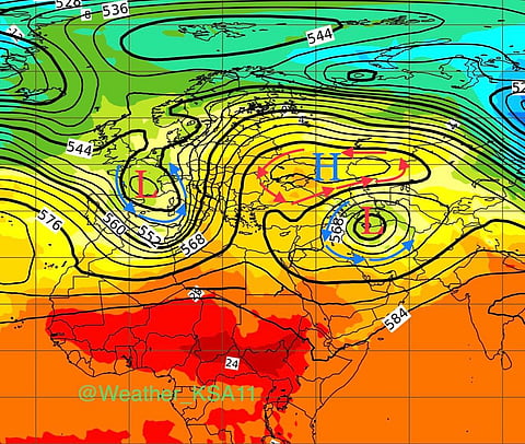 وتفصيلاً، قال "الحربي" لـ"سبق": بمشية الله، حالة عدم استقرار واضطرابات جوية متوقعة نتيجة تقدُّم أخدود جوي في طبقات الجو العليا؛ إذ من المتوقع أن تستمر أيامًا عدة - بأمر الله - وذلك تبعًا لديناميكية الهواء العلوي، وشكل الموجة التي تأخذ شكل أوميغا، وهو ما يعرف بـ(block)، أي ما يعني استمرار تأثير موجات المنخفض أيامًا عدة.