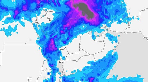 ويتزايد تدريجيًّا اعتبارًا من ساعات الليل المتأخرة (الخميس/ الجمعة)، تأثر المملكة بالحالة الماطرة والمرفقة بجبهة هوائية باردة تتميز ببطء حركتها؛ بحيث تمتد الأمطار لشمال غرب منطقة الرياض إداريًّا (عفيف، الدوادمي) وغرب القصيم، وتتشكل التخريجات البحرية وسط البحر الأحمر وتؤثر على بعض المناطق الساحلية من منطقة مكة المكرمة بما في ذلك مدينة جدة، وتترافق بهطول زخات من الأمطار قد تكون غزيرة أحيانًا ومصحوبة بحدوث الرعد حينها.