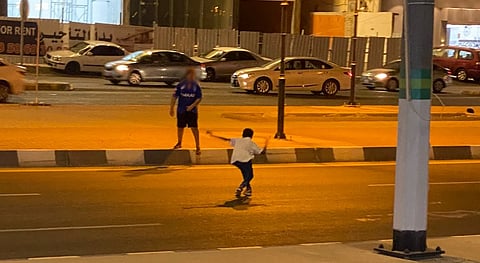 وأقدم الطفلان أكثر من 4 مرات على قطع الطريق والعودة مرة أخرى، ووصل بهما اللعب إلى الجلوس تربيعًا وسط الخط السريع، ثم القيام مرة أخرى والجلوس في الجزيرة الوسطية، ورمي بعض الحجارة في طريق المركبات.