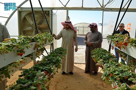 وفي إطار الدعم والمساندة للمزارعين، زار مدير عام فرع وزارة الزراعة بالجوف المـهندس عبدالعزيز بن محمد الرجيعي، مـزرعة أحد المزارعين الذين نجحوا في إنتاج الفراولة في البيوت المحمية، واطلع على المزرعة التي تضم 22 بيتاً محمياً بمساحة 324 م2، بواقع 6000 شتلة لكل بيت، مما يوصل إنتاجها إلى 70 طناً سنوياً.