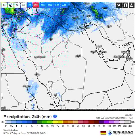 وقال عبر حسابه في "تويتر": الحالة الماطرة وفي يومها الرابع متوقع أن تهطل زخات مطرية متفرقة على أجزاءٍ من مناطق: #حائل #الحدود_الشمالية #الجوف، إضافة إلى #الكويت.